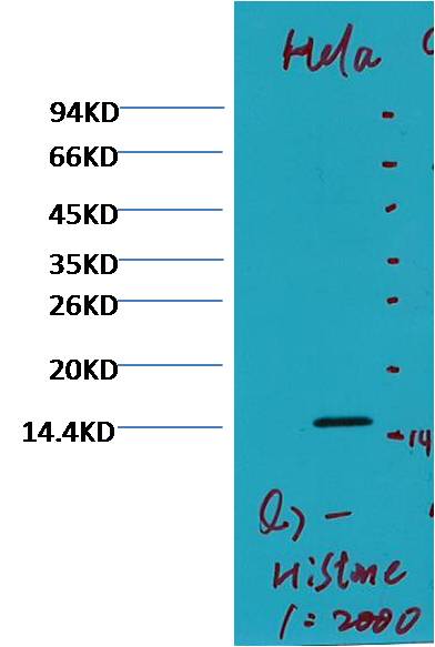 Background: Histone H3 is one of the five main histone proteins involved in the structure of chromatin in eukaryotic cells. Core component of nucleosome. Nucleosomes wrap and compact DNA into chromatin, limiting DNA accessibility to the cellular machineries which require DNA as a template. Histones thereby play a central role in transcription regulation, DNA repair, DNA replication and chromosomal stability.