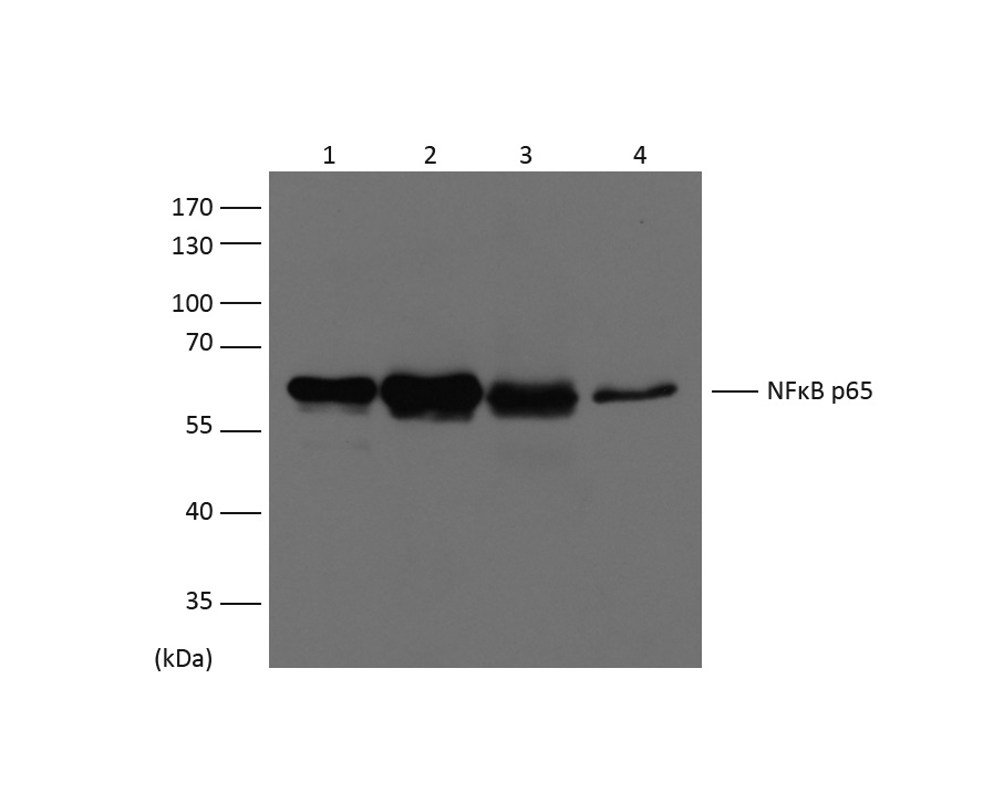 NFkB p65 is ubiquitinated leading to its proteosomal degradation, which is required for termination of the NFkB response. Phosphorylation of NFkB p65 on S536 stimulates acetylation of K310 by CBP, enhancing transcriptional activity. NFkB p65 is also acetylated at K122, enhancing DNA binding and impairing the interaction with NFKBIA. The protein is deacetylated by HDAC3. Invasion of a host by a pathogen is frequently associated with the activation of NF-kB, which coordinates various aspects of immune function required for resistance to infection.