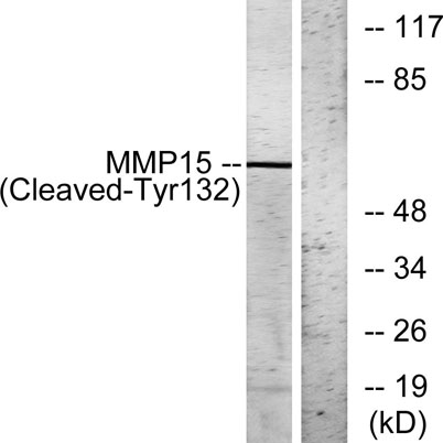 The antiserum was produced against synthesized peptide derived from human MMP15. AA range:113-162