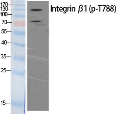 The antiserum was produced against synthesized peptide derived from human Integrin beta1 around the phosphorylation site of Thr788. AA range:749-798