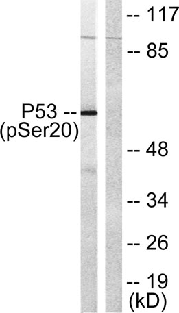 The antiserum was produced against synthesized peptide derived from human p53 around the phosphorylation site of Ser20. AA range:10-59