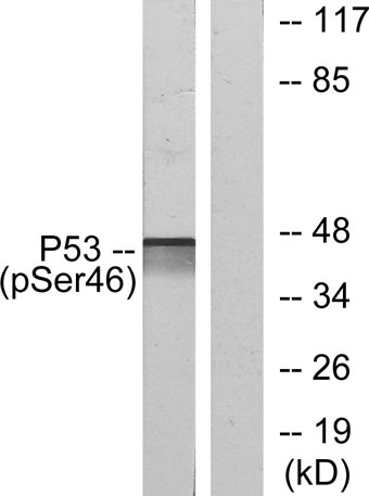 The antiserum was produced against synthesized peptide derived from human p53 around the phosphorylation site of Ser46. AA range:11-60