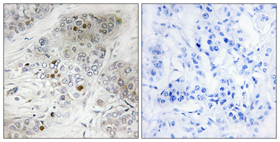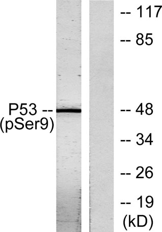 The antiserum was produced against synthesized peptide derived from human p53 around the phosphorylation site of Ser9. AA range:1-50