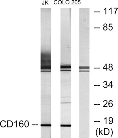 The antiserum was produced against synthesized peptide derived from human CD160. AA range:21-70