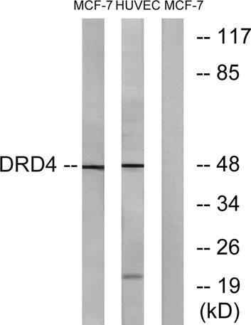 The antiserum was produced against synthesized peptide derived from human DRD4. AA range:355-404