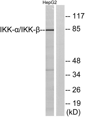 The antiserum was produced against synthesized peptide derived from human IKK-alpha/beta. AA range:141-190