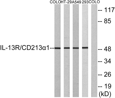 The antiserum was produced against synthesized peptide derived from human IL-13R/CD213 alpha1. AA range:371-420