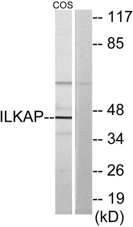The antiserum was produced against synthesized peptide derived from human ILKAP. AA range:41-90