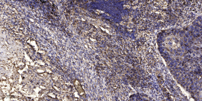 Immunohistochemical analysis of paraffin-embedded human Squamous cell carcinoma of lung. 1, Antibody was diluted at 1:200(4° overnight). 2, Tris-EDTA,pH9.0 was used for antigen retrieval. 3,Secondary antibody was diluted at 1:200(room temperature, 45min).