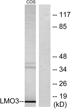 The antiserum was produced against synthesized peptide derived from human LMO3. AA range:96-145