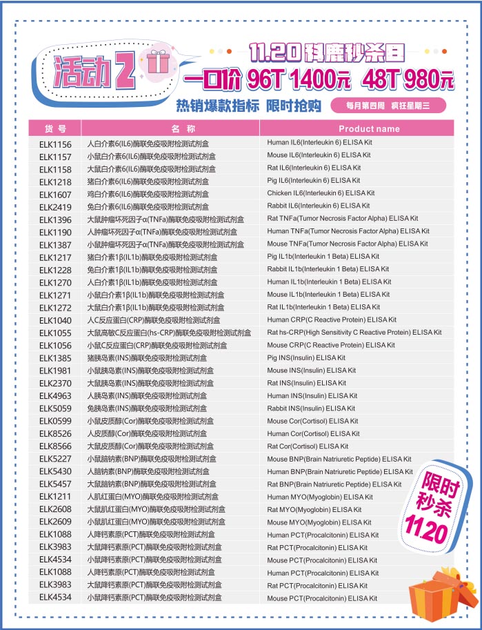 ELK 全場(chǎng) ELISA 試劑盒優(yōu)惠多多,有賣有送