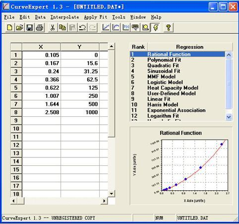 以下所述中使用的曲線繪制軟件為Curve E xpert1.4, 各位老師們?nèi)缬行枰纯?span style="font-family:微軟雅黑;">點(diǎn)擊此鏈接下載自行下載使用;