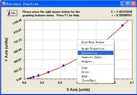 9. 如想得到 ELISA 擬合曲線的方程,可在步驟 6 的對(duì)話框空白處右擊,選擇”Information”