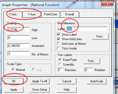 11. 修改作圖中 X,Y 坐標(biāo)軸高度以及相關(guān)屬性 選擇步驟 9 所示圖中的第二排“Graph Properties”,修改好后點(diǎn)擊 OK 保存