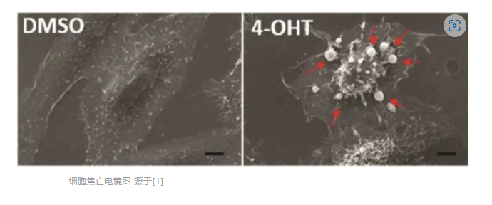 細(xì)胞焦亡(pyroptosis)是一種新的程序性細(xì)胞死亡方式,其依賴于Gasdermin家族蛋白形成質(zhì)膜膜孔的、可調(diào)控的細(xì)胞死亡,經(jīng)常但并不總因炎癥性Caspase的活化而完成。其形態(tài)學(xué)特征在電鏡下觀察,可清楚看到在細(xì)胞質(zhì)膜破裂前,焦亡的細(xì)胞形成大量小泡,即焦亡小體。之后細(xì)胞膜上會形成孔隙,細(xì)胞膜破裂,內(nèi)容物流出。